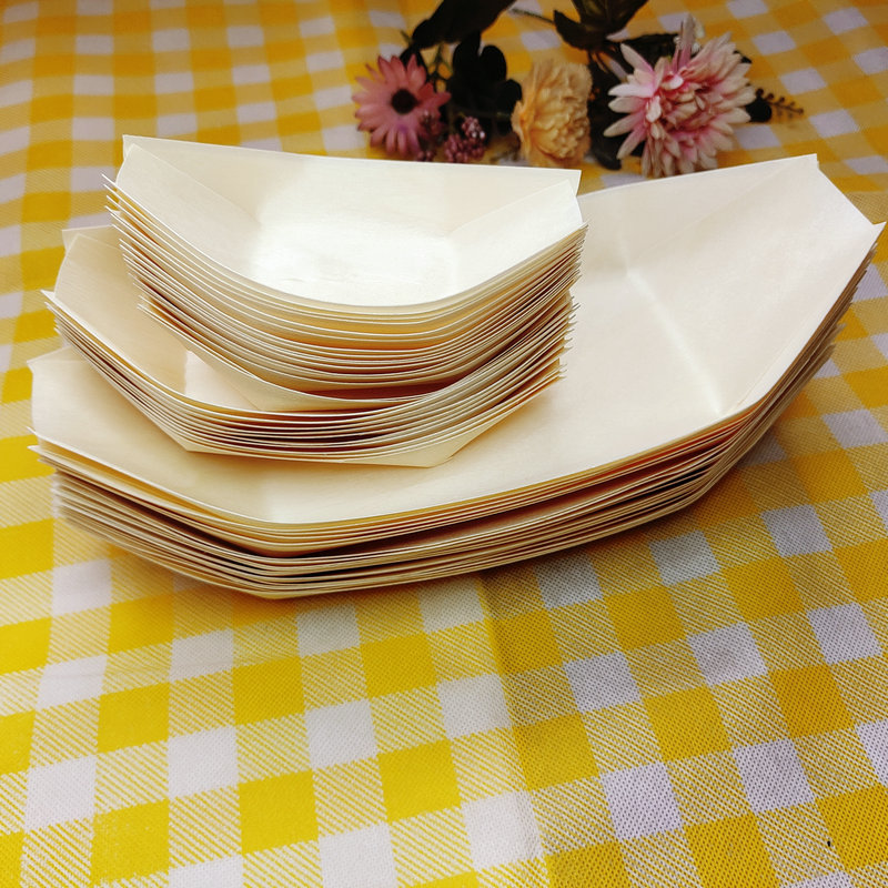 100%Natrual Eco Sushi Boat Disposable Wooden Boat for Food Sushi Trays Fast Food